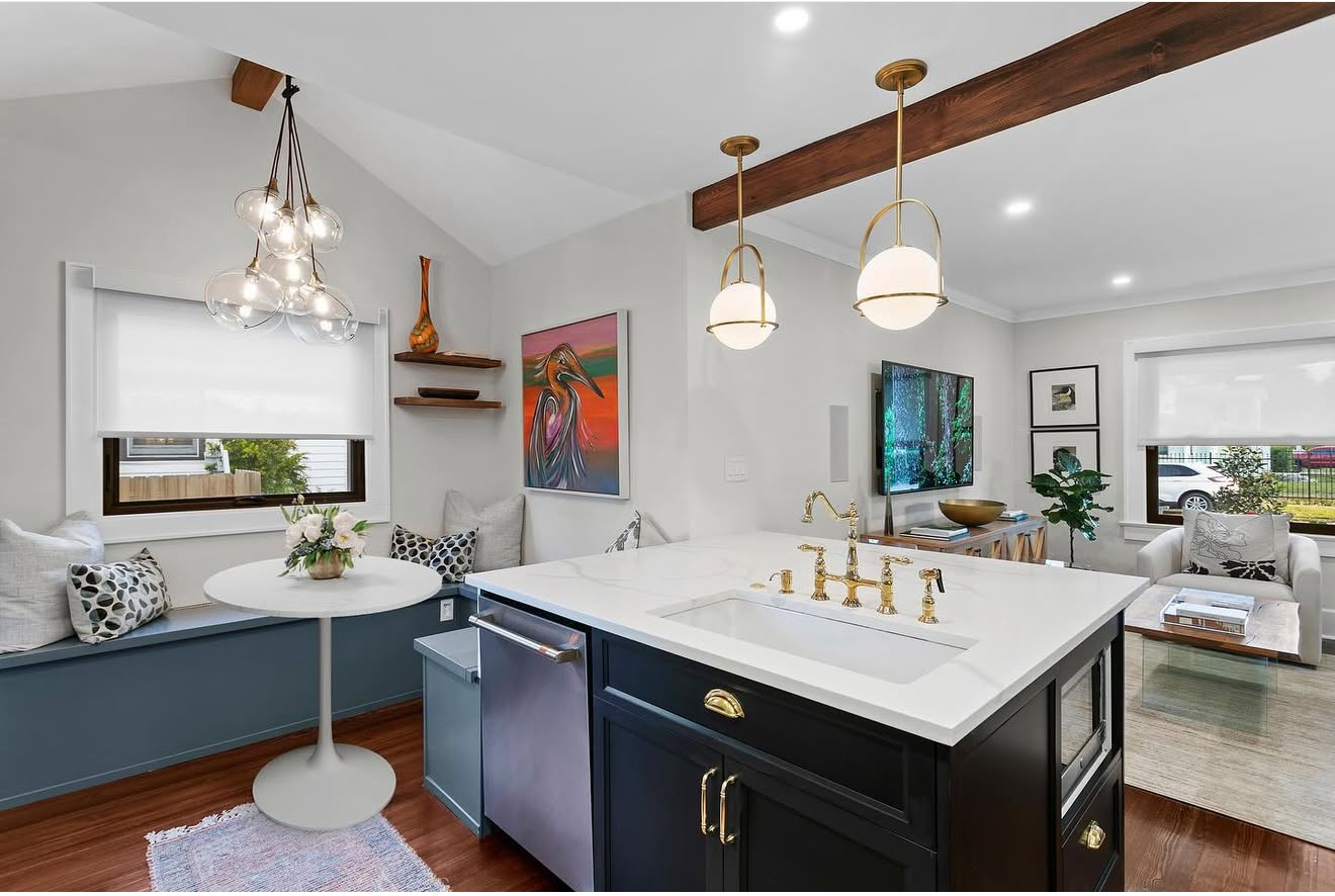 A spotless home shows better, photographs better, feels bigger, and tells buyers the home has been well maintained. I’d never list without a full deep clean (if you don’t have a cleaner, we can recommend one), decluttering countertops (Jenny and I always joke about this. HIDE IT ALL: toaster, coffee pot, utensils), minimizing personal items (take down wedding photos, baby photos, etc.) so buyers can visualize themselves in your home, and fresh linens, clean or refreshed area rugs, clean towels, updated bedding, and soft staging touches like throw pillows, blankets, and plants. Real plants are best and less expensive. Clean sells. Always.